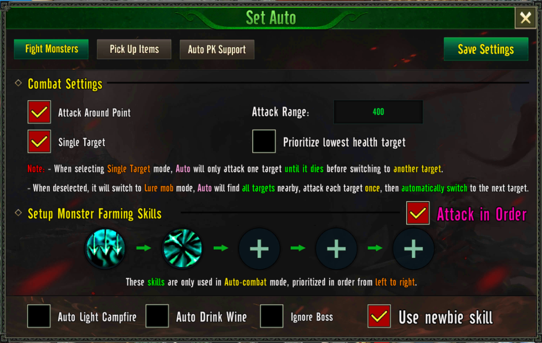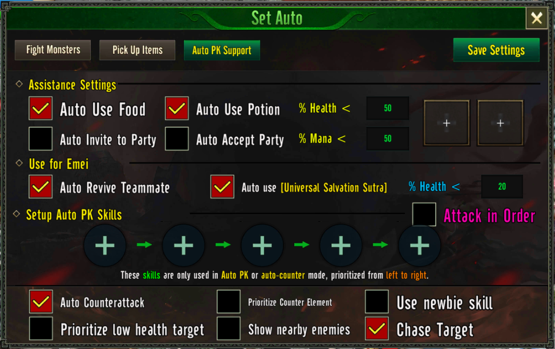 - Skill Settings for Auto PK: