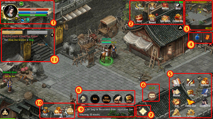 When embarking on your journey through the martial world, fellow heroes may feel confused and have many questions. The first thing you'll encounter are the toolbars in the main interface of the game. To help all noble players better understand and effectively use these toolbars, the admin team provides a general guide as follows: