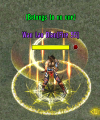 Wan Lao Dian[Fire] | - Location: Randomly appears on one of the level 45 maps. - Rewards (Random Drops): + Mysterious Crystals 3, 4, 5, 6, 7, 8. + Silver 500, 5000. + Weapon TangMen Crossbow/Dagger, Emei Sword /Gauntlet Level 50, 60. |