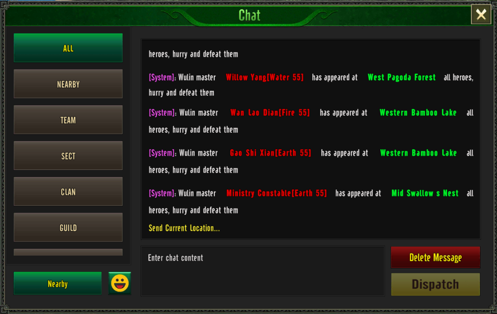 - When the boss appears, the system will announce the boss name and map location in the chat channel.