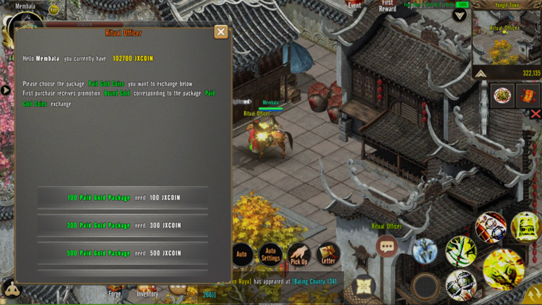 - Notes: When you top up in web, you will recieve JXCOIN, after you complete top up, Convert JXCOIN to gold