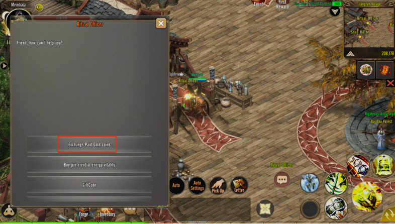 - Talk to NPC and choose "Exchange Paid Gold coins"