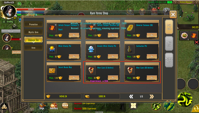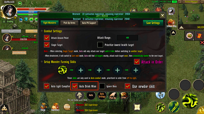 - Use various types of Wine to receive double Experience from the Campfire, stacking with the Cultivation Pearl.