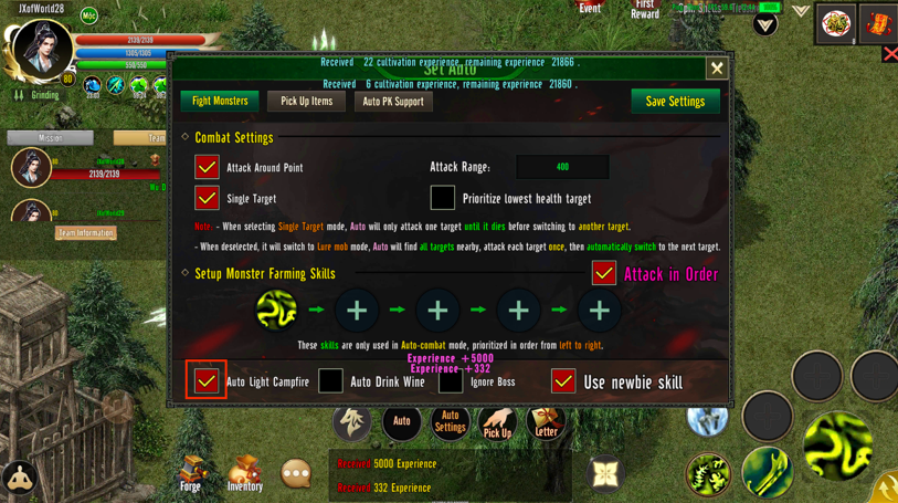 - Use the Cultivation Pearl to receive double Experience from the Campfire.